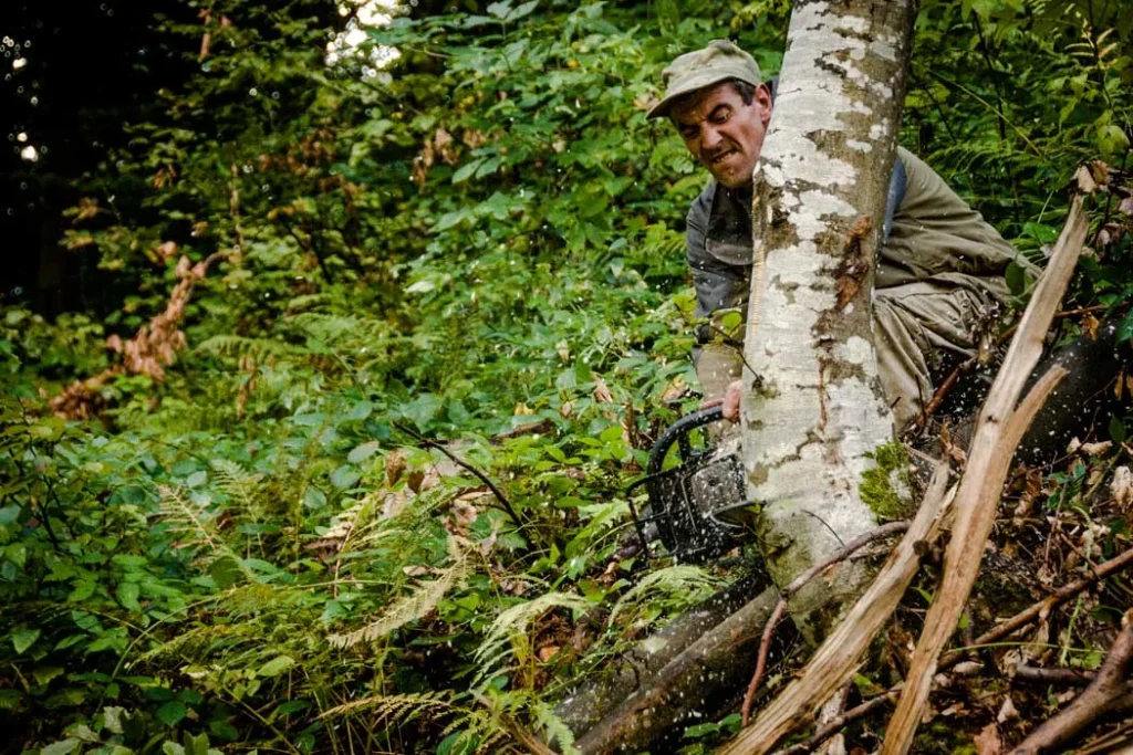 Serhiy, a lumberjack of the Carpathian Mountains in action. His work is one that is precise and demands thoughtfulness, decisiveness and… physical strength. His job extends far beyond counting the trees he cuts.