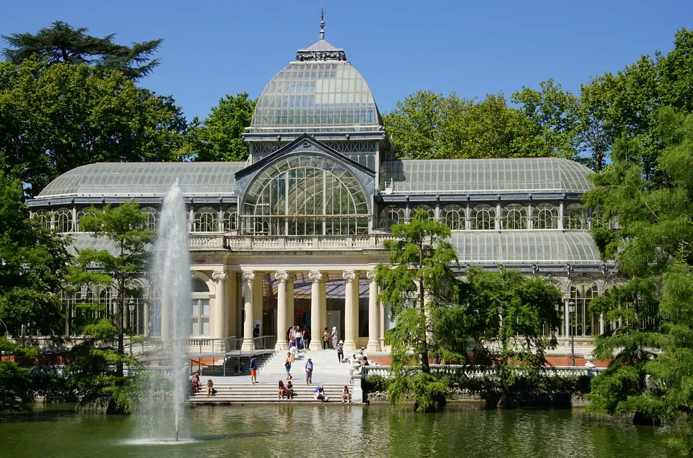 The all-glass structure allows natural light to flood in, creating a dazzling effect as it reflects off the glass panels. The surrounding trees and the nearby lake enhance the palace’s picturesque setting. If you’re exploring on foot, it’s a pleasant walk from other central locations like the Prado Museum and Puerta de Alcalá.