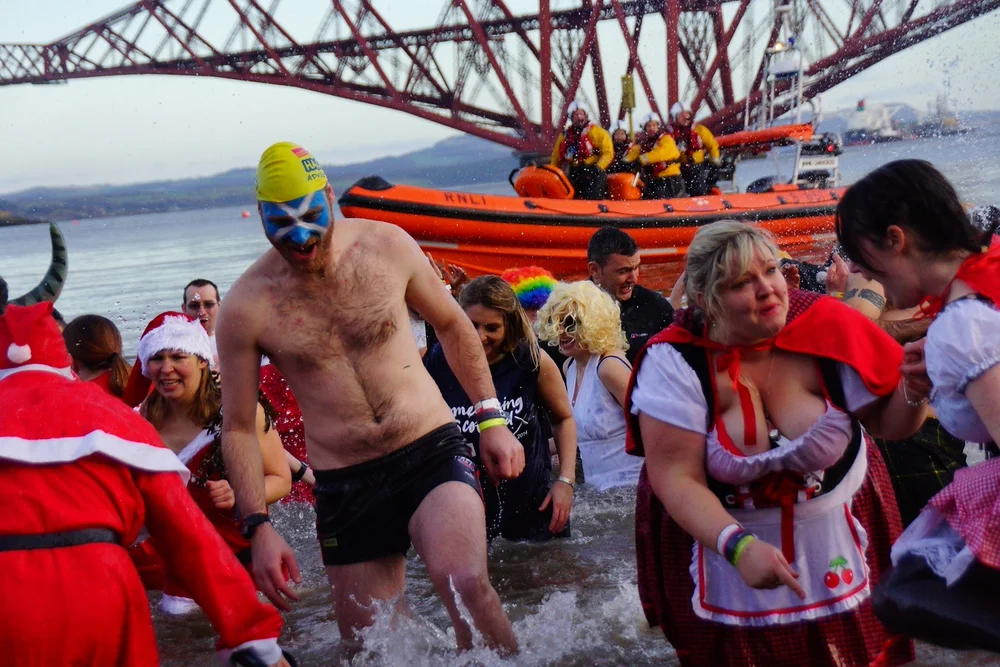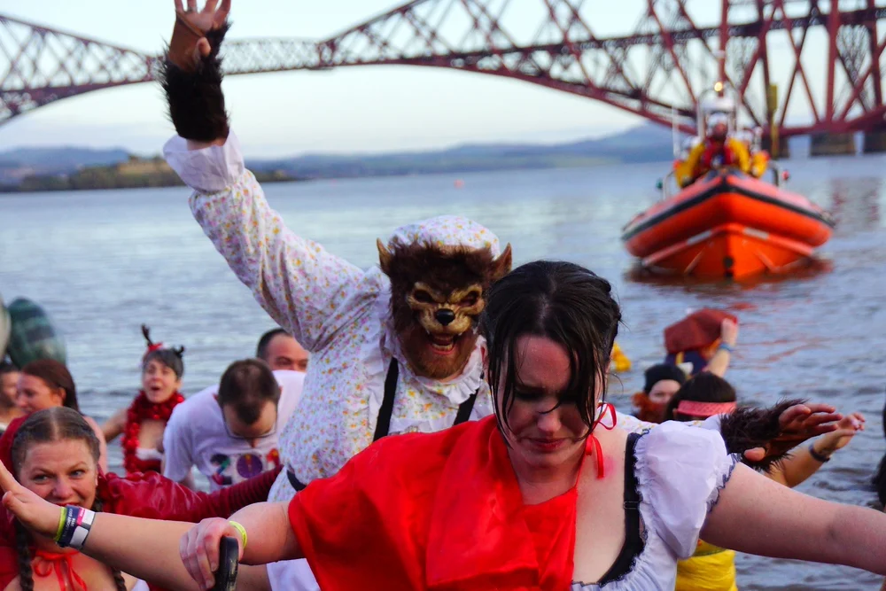 Isn’t it a shame that under normal circumstances our Halloween costumes accumulate nothing but dust most of the year? Well, for those living in and around South Queensferry – Edinburgh, it need not be the case. Every year after Hogmanay (New Year’s in Scotland) a hoard of mad brave souls converge for a frigid splash in the Firth of Forth with the magnificent Rail Bridge looming in the distance.