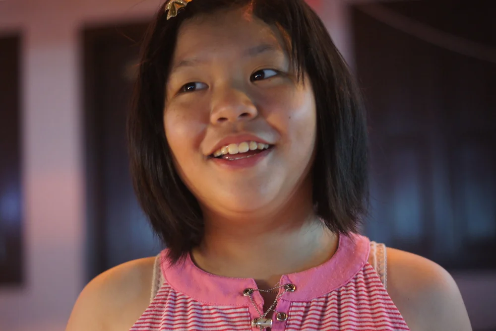 A child flashing a lovely grin. Jonker Street Night Market located in Malacca, Malaysia.