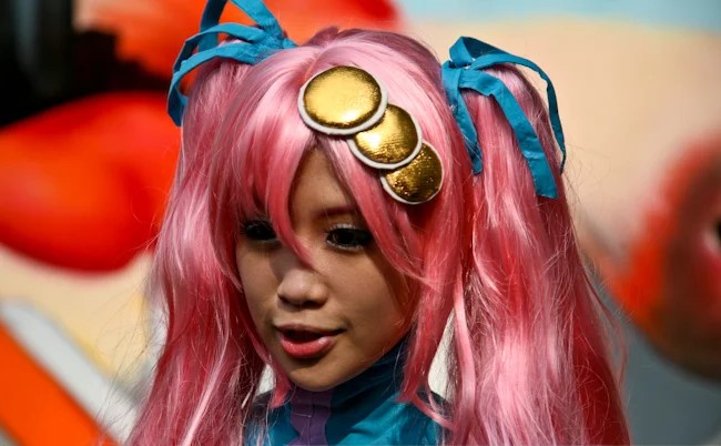 “A girl dressed up for an event called Cosplay. Big in Asia it’s where you dress up as your favorite cartoon character and you can see people who actually go to work looking like this sometimes.”