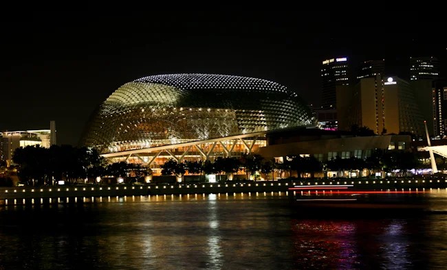 • Illuminated spikes: The spiky domes of The Esplanade take on an otherworldly glow at night, creating stunning compositions for both wide-angle shots and close-up architectural details.