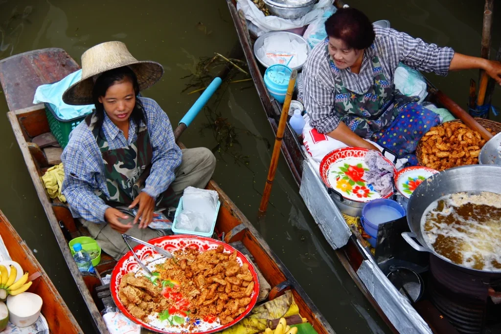 Food is at the heart of Damnoen Saduak, and the market is a haven for food lovers. Must-try street foods and snacks include pad thai cooked on floating woks, coconut pancakes freshly made before your eyes, and mango sticky rice that’s both sweet and satisfying. The floating food stalls and restaurants offer an authentic dining experience you won’t find elsewhere. Imagine savoring a bowl of aromatic noodle soup while seated on a wooden boat, the gentle sway of the canal adding to the ambiance.