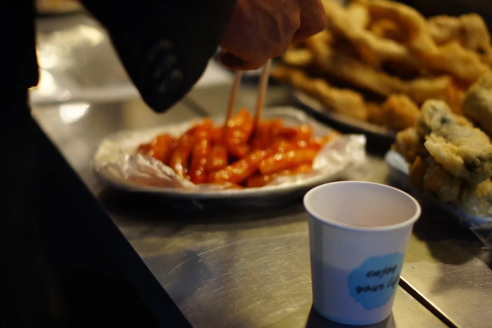Tteokbokki, or spicy rice cakes, is another popular street food you’ll find in Insadong. These chewy rice cakes are cooked in a thick, spicy-sweet sauce made from gochujang (Korean chili paste), giving them a satisfying kick. Often served with fish cakes and boiled eggs, Tteokbokki is a favorite among locals and visitors alike.